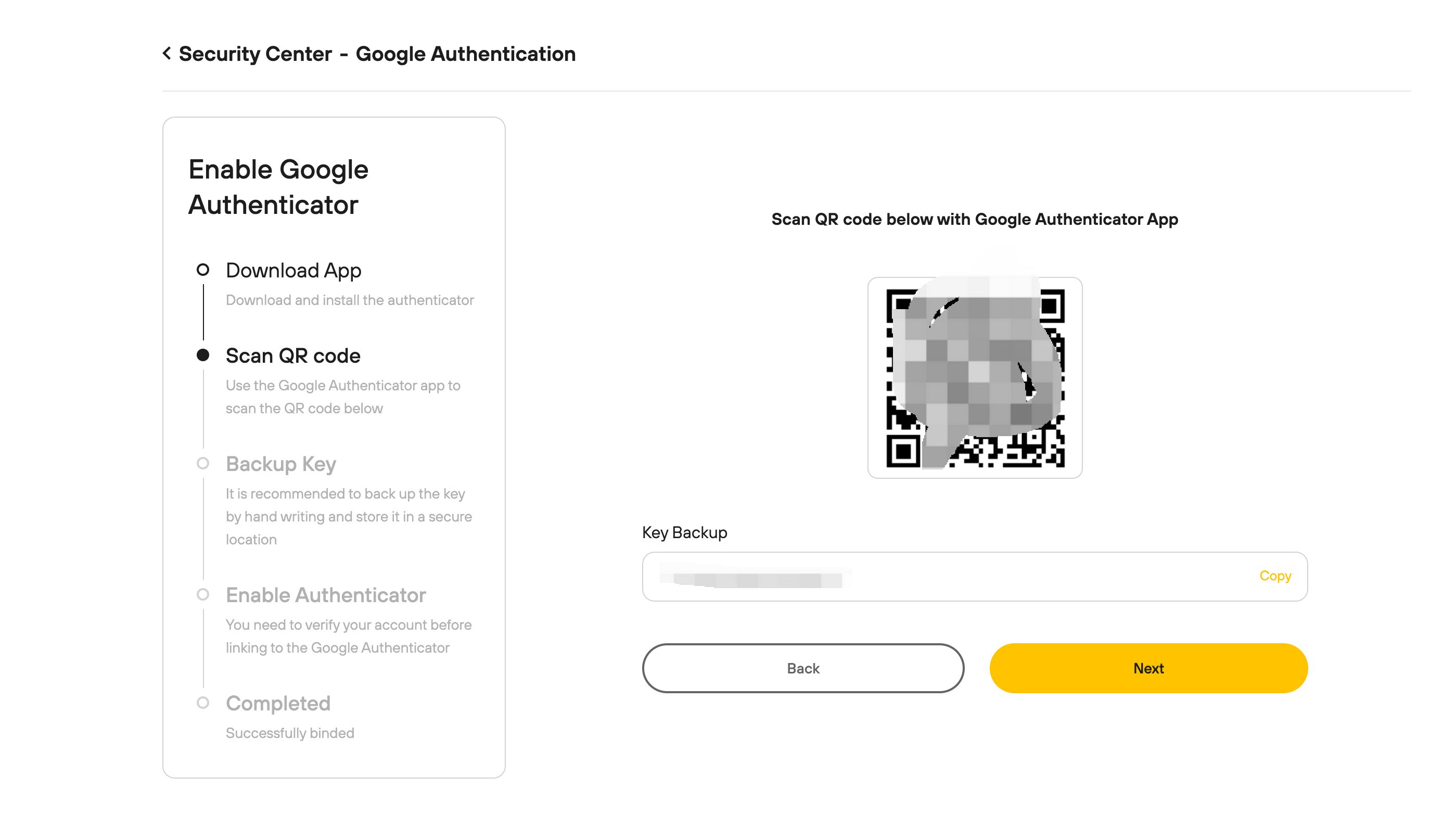 Important: Save the backup key securely. This is essential for recovery if you lose access to your device.